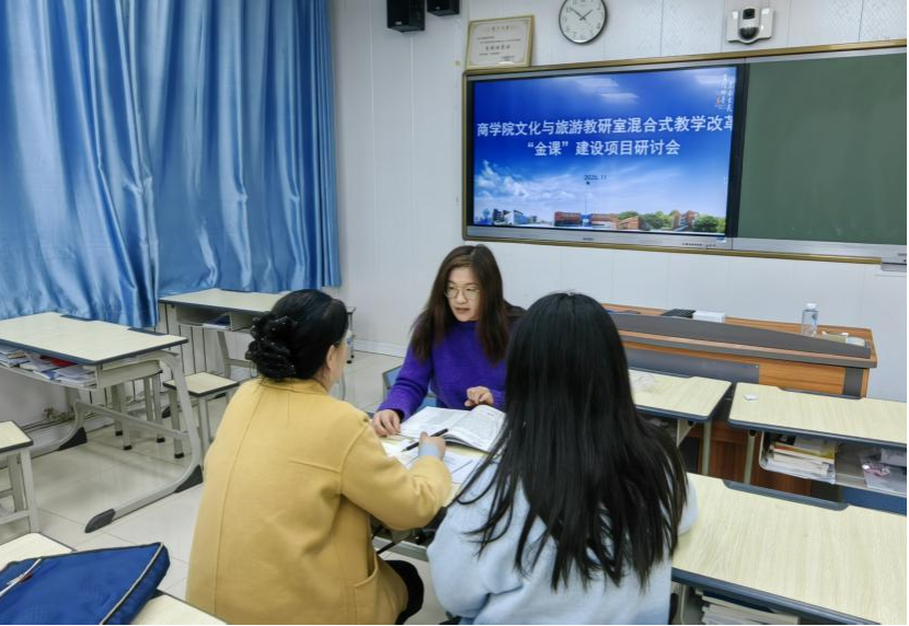 为持续推进混合式教学模式创新,深化课堂教学改革,着力打造具有高阶性、创新性与挑战度的“金课”,2025年11月12日,商学院文化与旅游教研室组织召开了混合式教学“金课”建设项目专题集体备课会。教研室主任黄梦媛、混合式“金课”主讲教师张东玲及成员郑慧颖老师共同参与研讨。