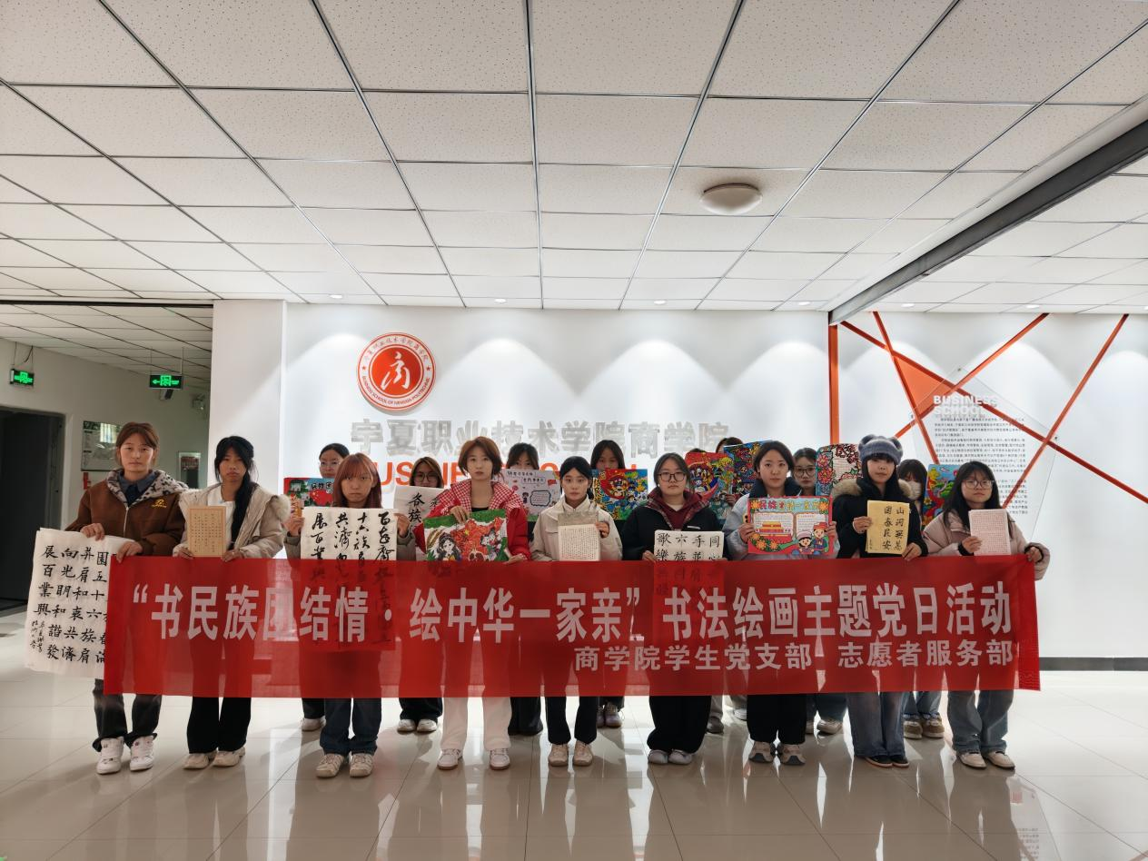 为厚植青年学子家国情怀,近日,商学院学生党支部联合志愿者服务部、暖阳义工协会开展“书民族团结情·绘中华一家亲”书法绘画主题党日活动。学生党员、入党积极分子及青年志愿者共同以笔墨传情、以丹青表意,凝聚民族团结奋进力量。