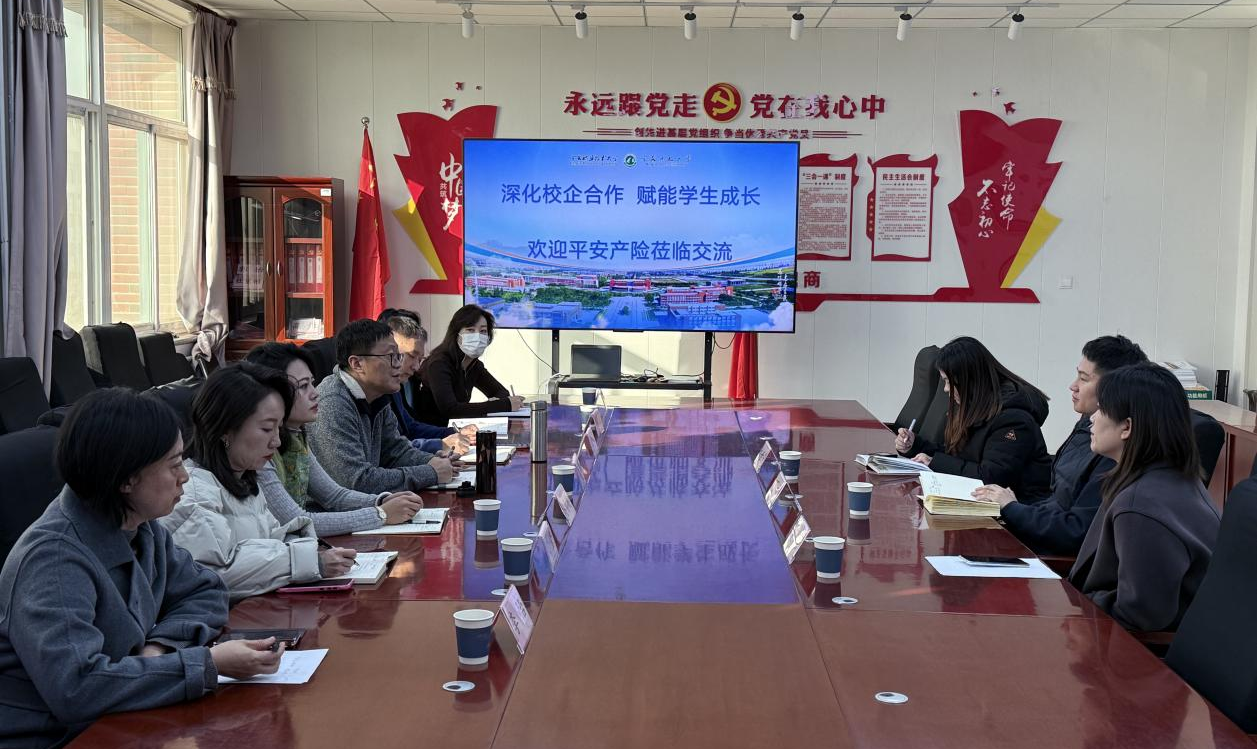 11月26日上午,中国平安财产保险股份有限公司宁夏分公司兴庆支公司城市经理丁桢、营销经理赵香丽、行政人员刘世芳一行到访宁夏职业技术大学商学院,围绕学生实习就业与校企协同育人等议题,与校方开展务实交流。宁夏职业技术大学商学院院长陈志新、党总支副书记姜碧薇、副院长王庆锋、学生办公室主任李姣、办公室副主任宋莹及金融管理教研室部分教师共同参与会谈,共商合作机制、共话人才未来。