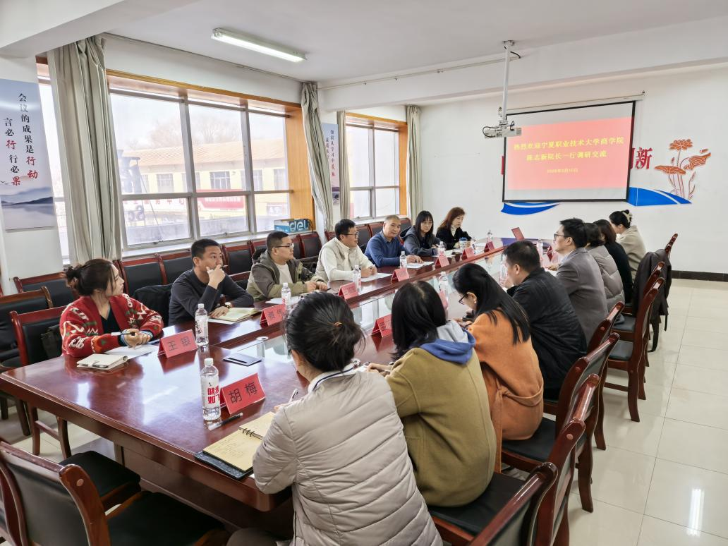 为深入贯彻国家关于现代职业教育体系建设的改革精神,扎实推进学校第三批职业本科专业申报与建设工作,2026年3月10日,商学院院长陈志新率领学院相关领导及教研室主任、骨干教师,专程赴银川能源学院开展职业本科专业建设专题调研。银川能源学院商学院院长刘向阳、副院长雍建英、薛峰等班子成员及相关专业骨干教师热情接待了调研组一行。