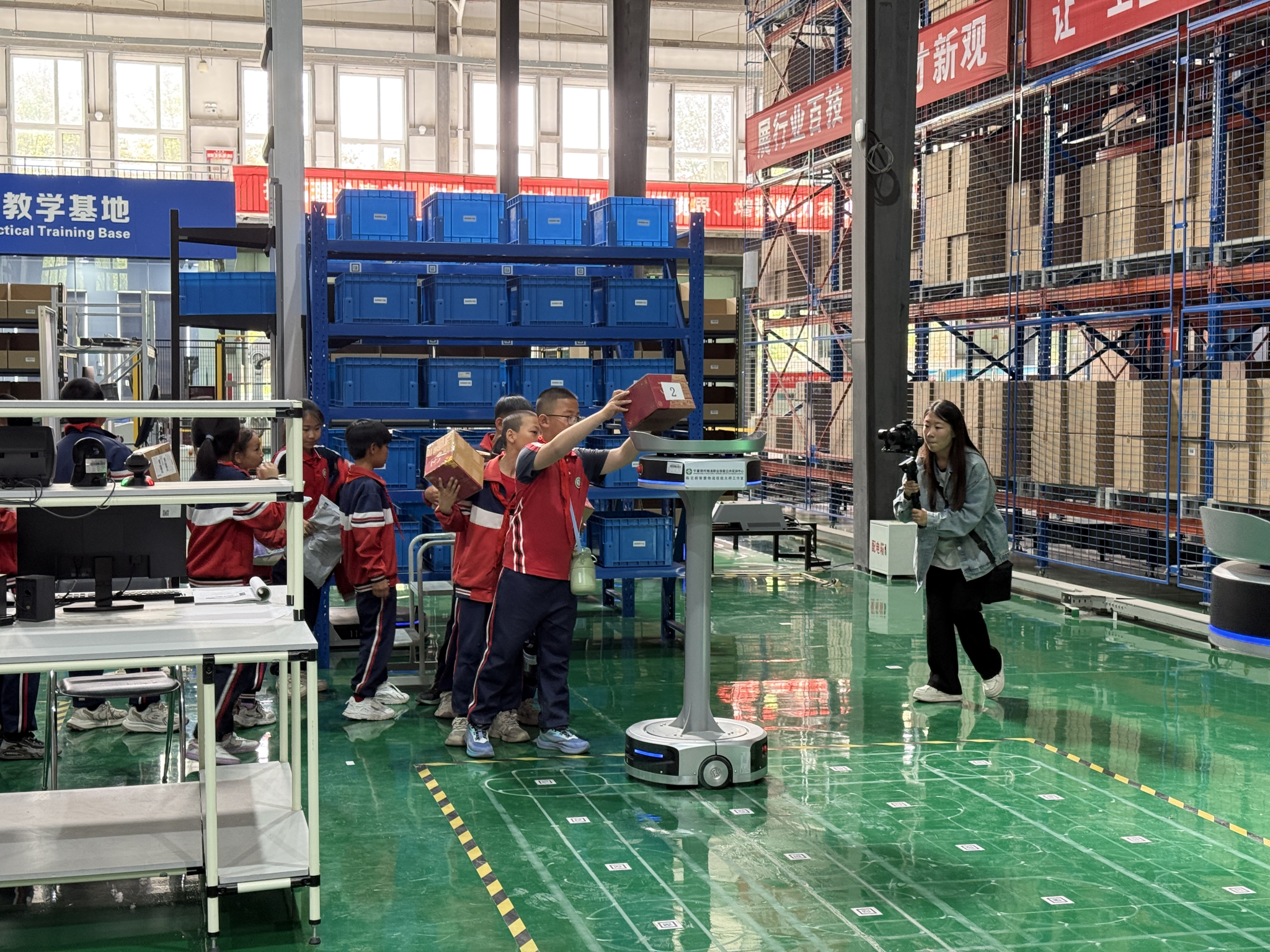 2026年4月22日,加强小学生科学素养,促进中小学与大学的科普资源共享,提升中小学学生的职业认识及现代科学技术水平,以“科技赋能发展 智慧引领未来”为主题的大手拉小手“行走的思政课”在宁夏现代物流公共实训中心开展,西夏区华西小学200余名四年级学生走进宁夏现代物流公共实训中心,近距离感受现代物流科技的魅力,帮助学生们跳出书本知识,直观领略智慧物流的发展成果,在实地体验中种下崇尚科学、探索创新的种子。